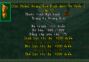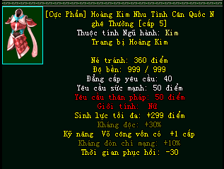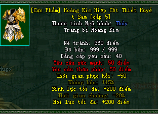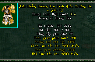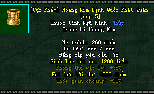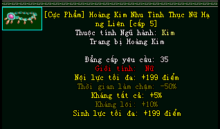 Chức năng:  Nâng cấp trang bị Hoàng Kim