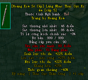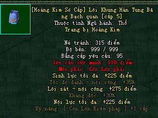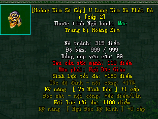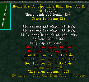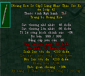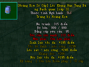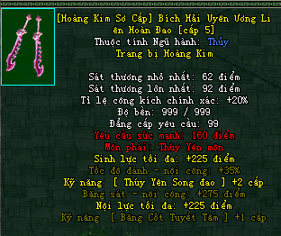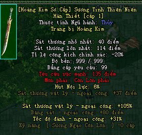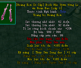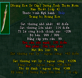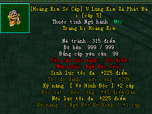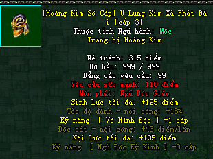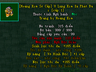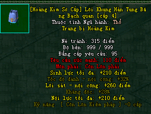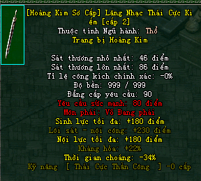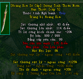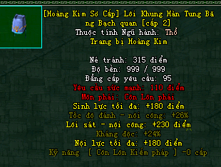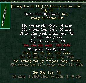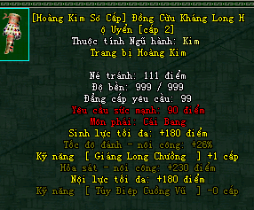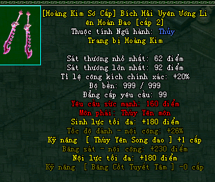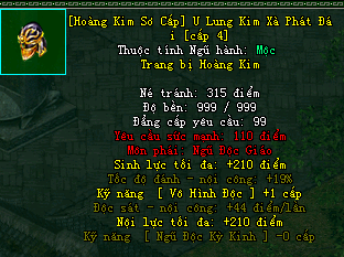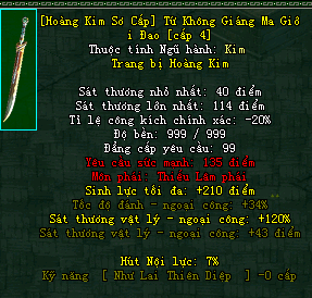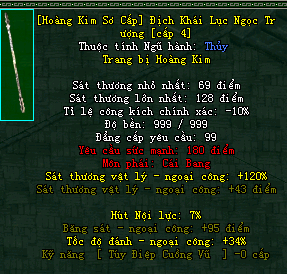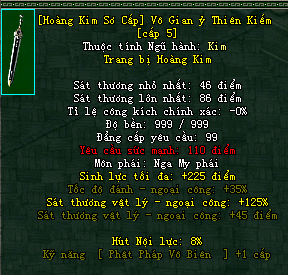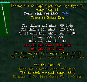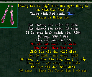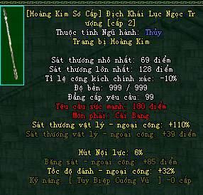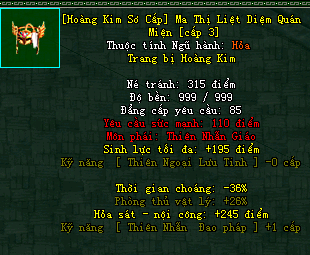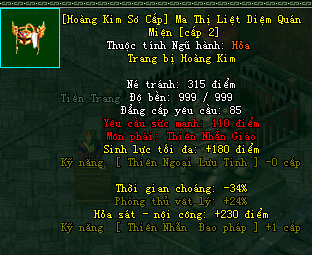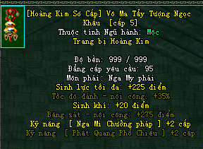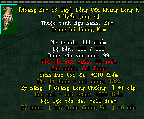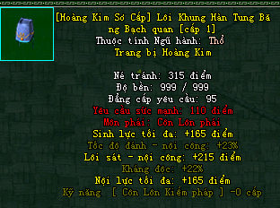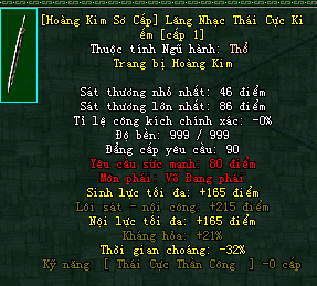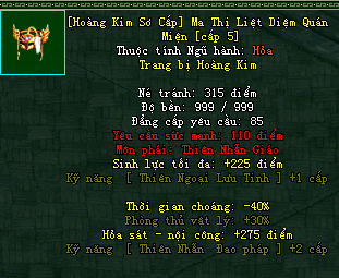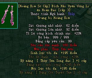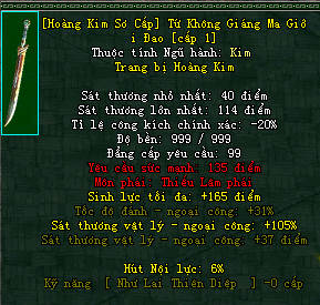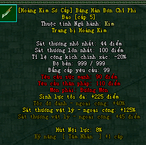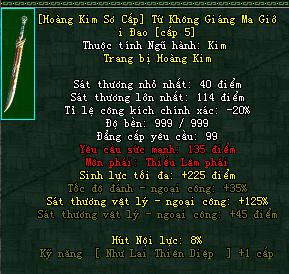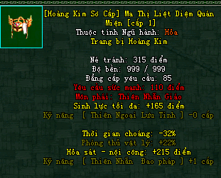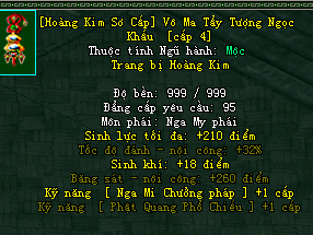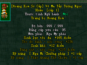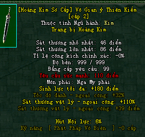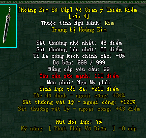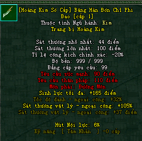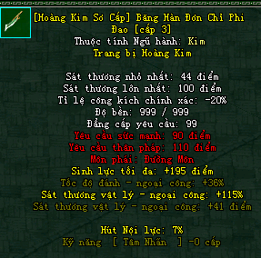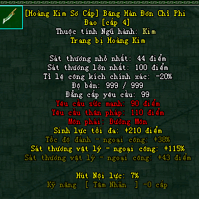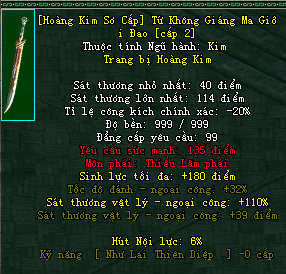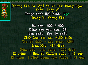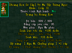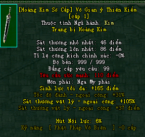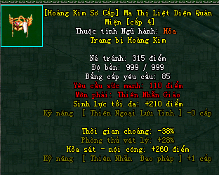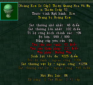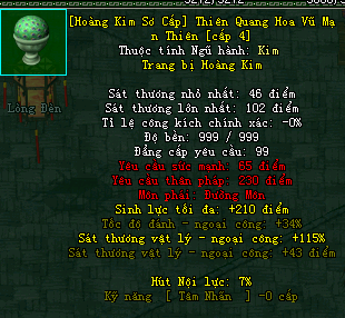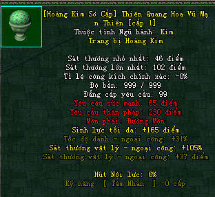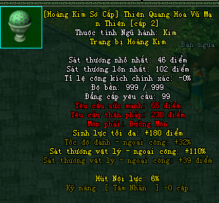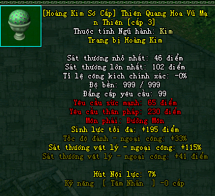 | Cấp trang bị | Thuộc tính minh họa |