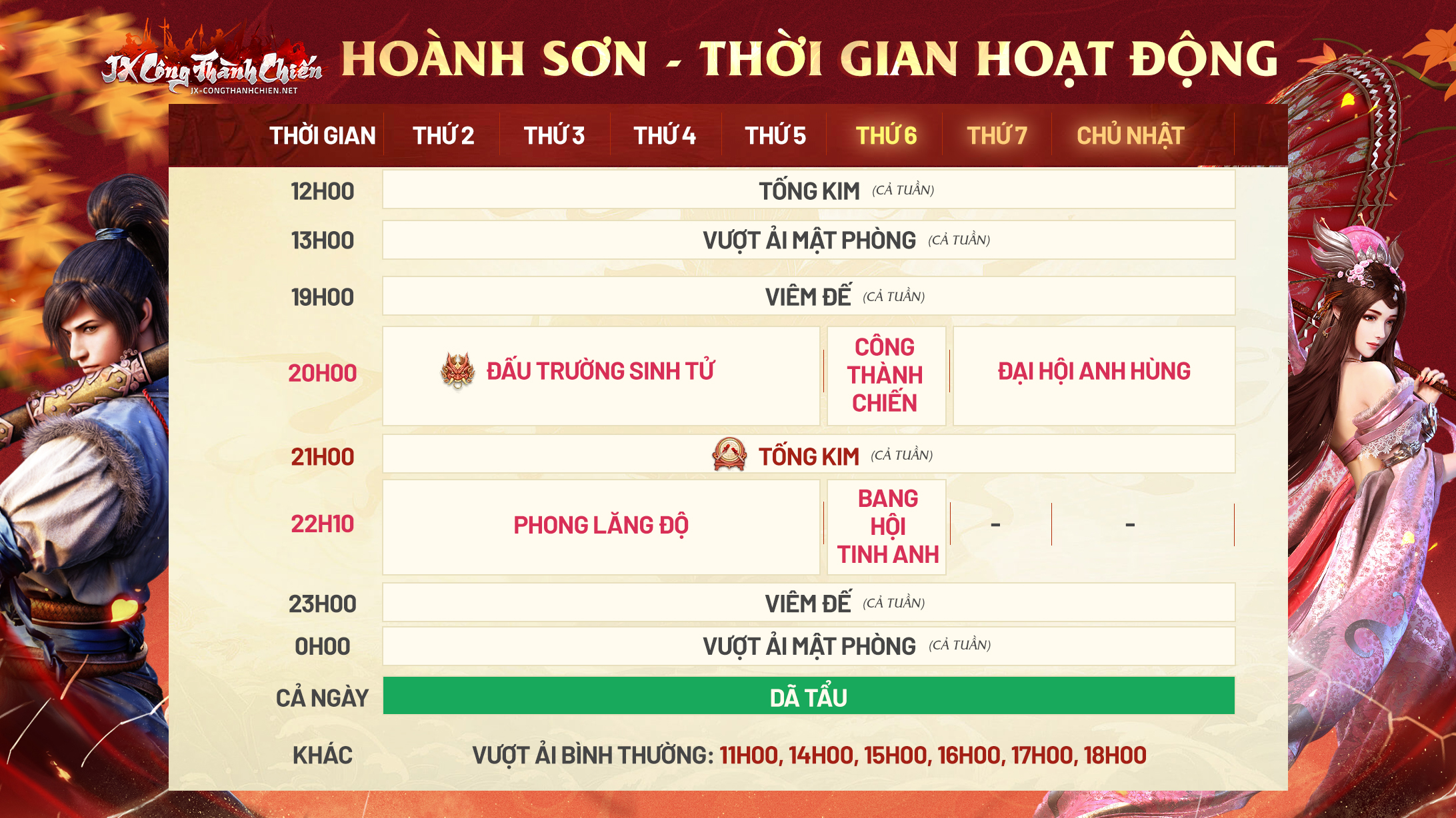 | 12. Nhiệm Vụ Vượt Ải – Mật Phòng – Diễn ra vào 2 khung giờ: 0h00 và 13h00 hằng ngày |