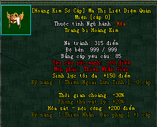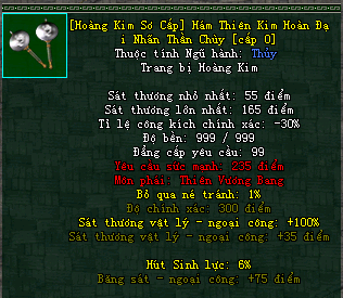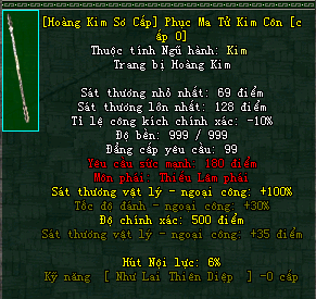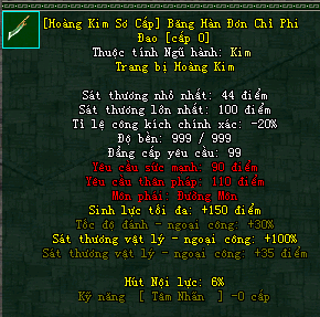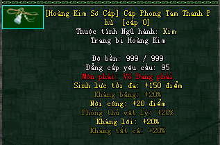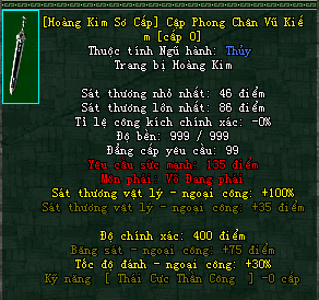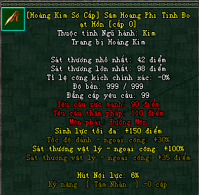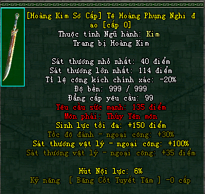 Danh sách trang bị Hoàng Kim Môn Phái (Sơ Cấp)