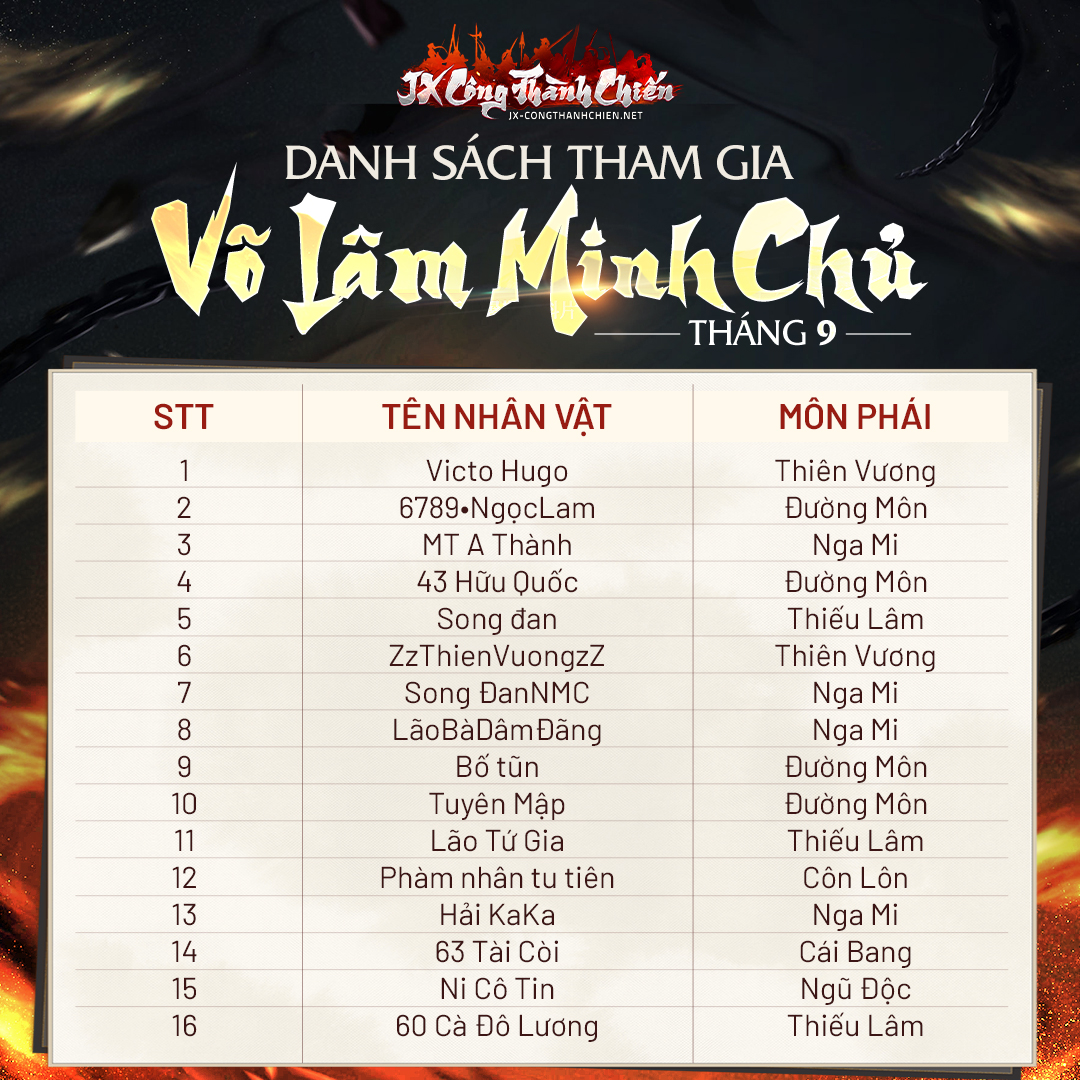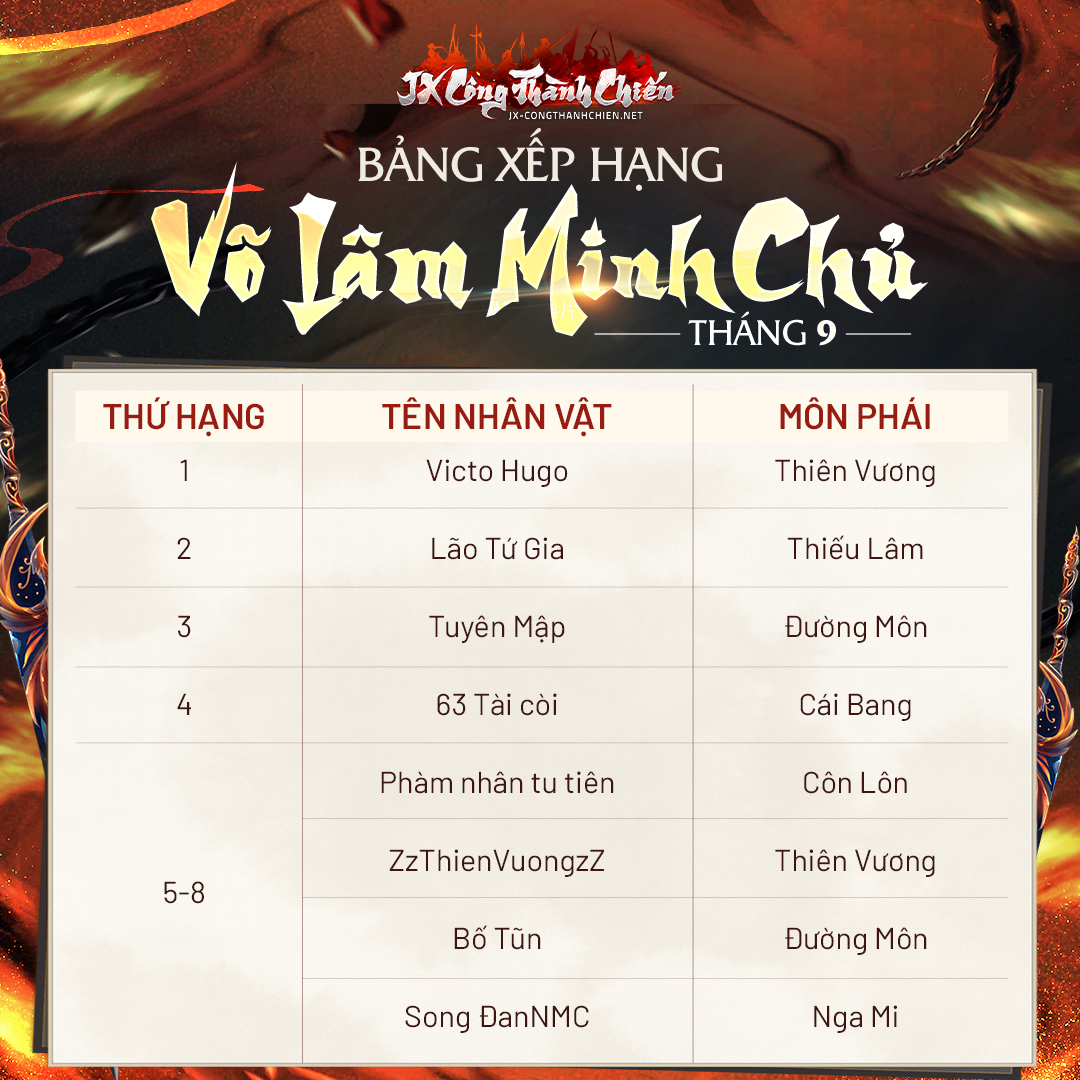 Trang Chủ > Tin Tức > Võ Lâm Minh Chủ Tháng 9